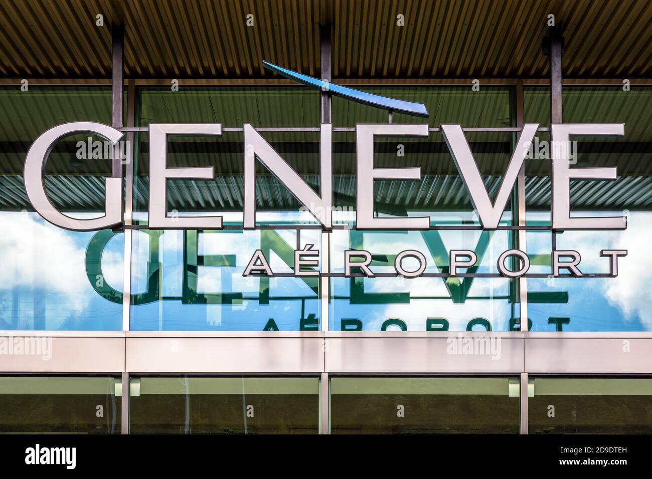 Front View Of The Sign Geneve Aeroport Geneva Airport Above The Main Entrance Of The International Airport Of Geneva Gva Stock Photo Alamy